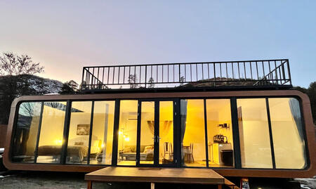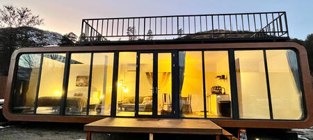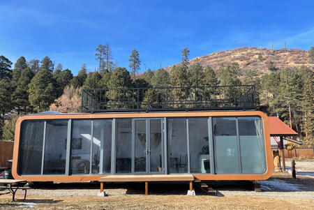 WYLD Durango Glass Caves are an experiential luxury stay immersed in nature, directly next to the Durango Hot Springs & Spa. Breathe in the clean mountain air among the ponderosa pines. Fall asleep rooftop stargazing. Wake up to the sunrise greeting nature that surrounds your floor-to-ceiling privacy glass window views and rooftop deck with 360 degree views of the Animas Valley and Mountains.