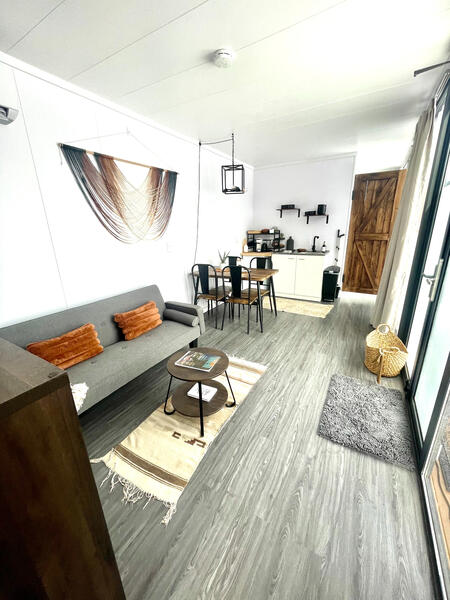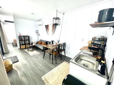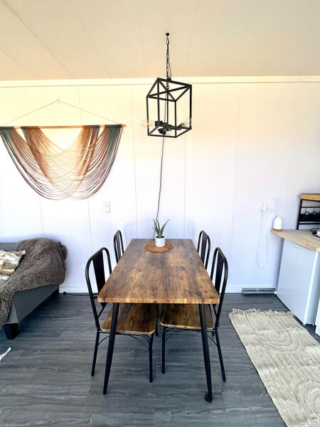 - Dining Table with chairs (king), Foldaway mini tables (queen)
